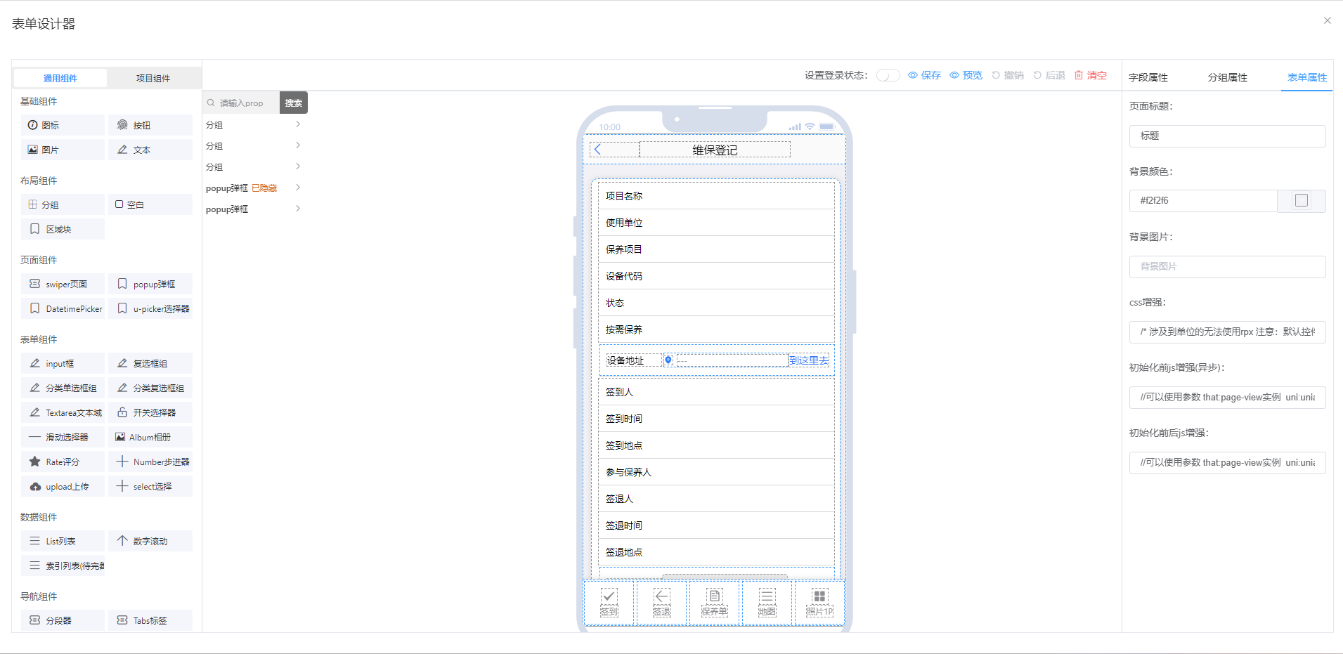 表单开发,其作用为在线生成表单,项目中所有涉及到的业务表的新增或修改需要在此菜单中统一进行。并且代码中有提供专门的工具类操作数据库,参考以下步骤熟悉后可自由进行开发。