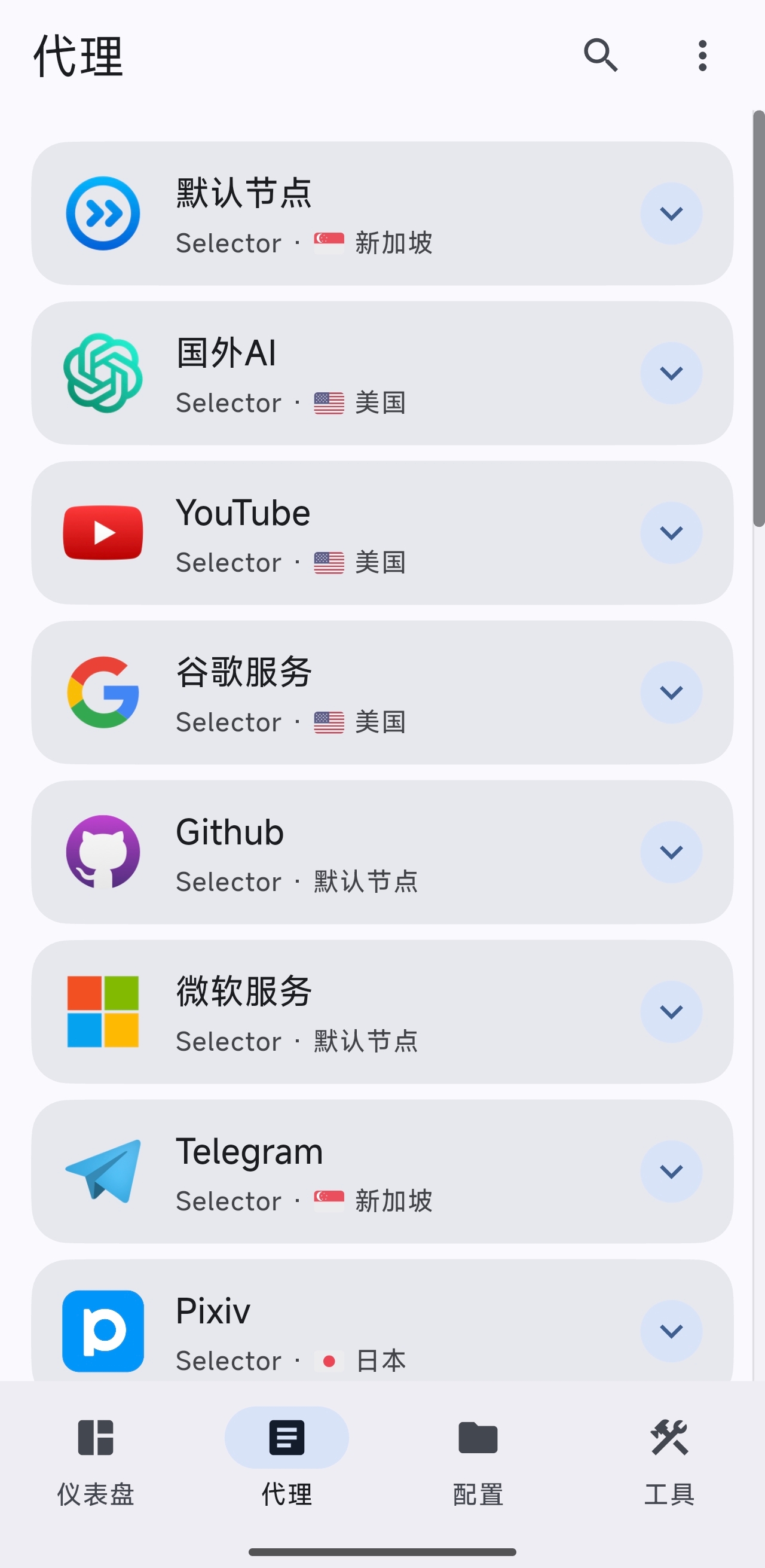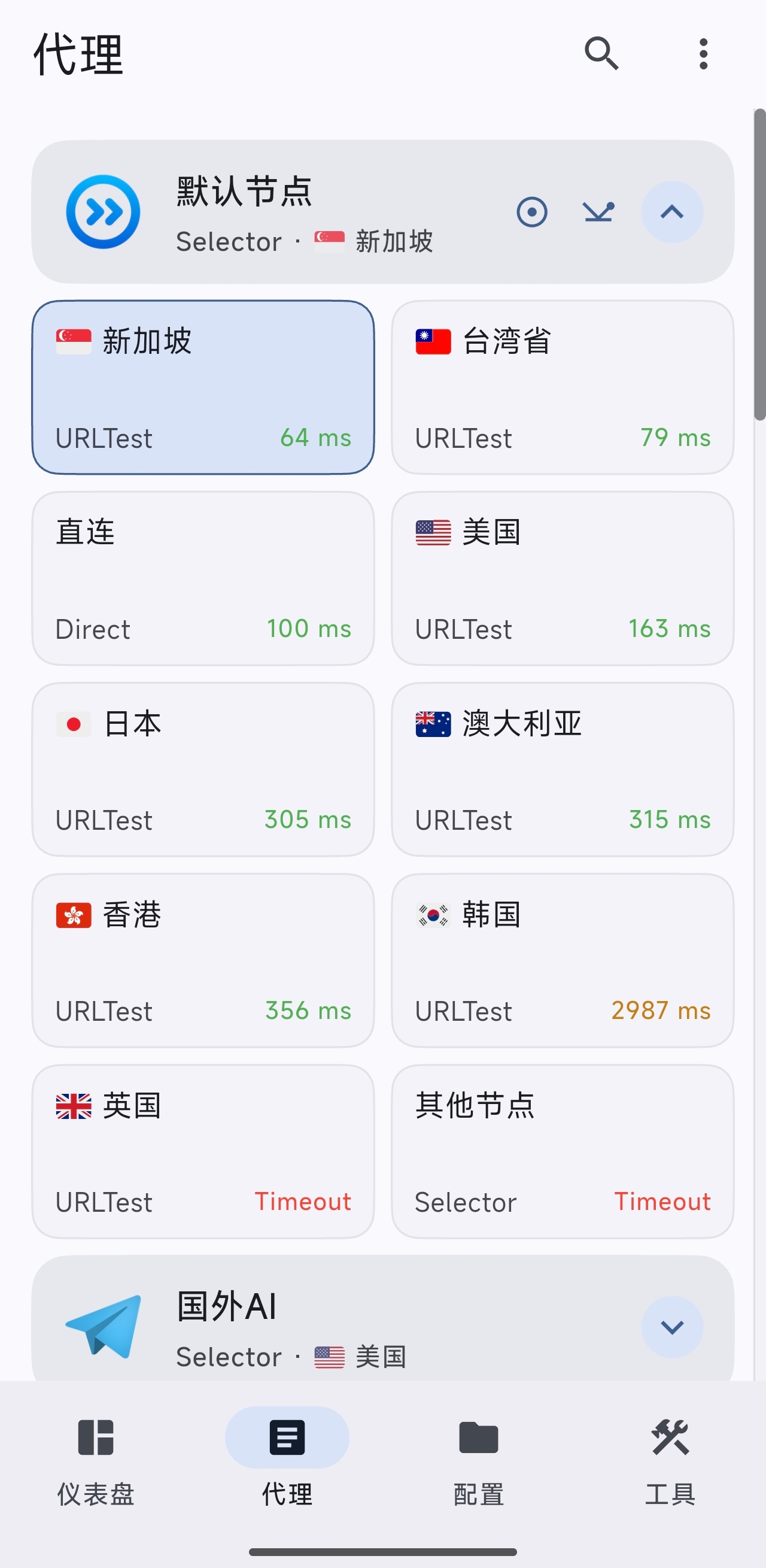 默认节点国外AIYouTube谷歌服务Github微软服务TelegramPixivSteamTwitter广告拦截下载专用其他外网国内网站