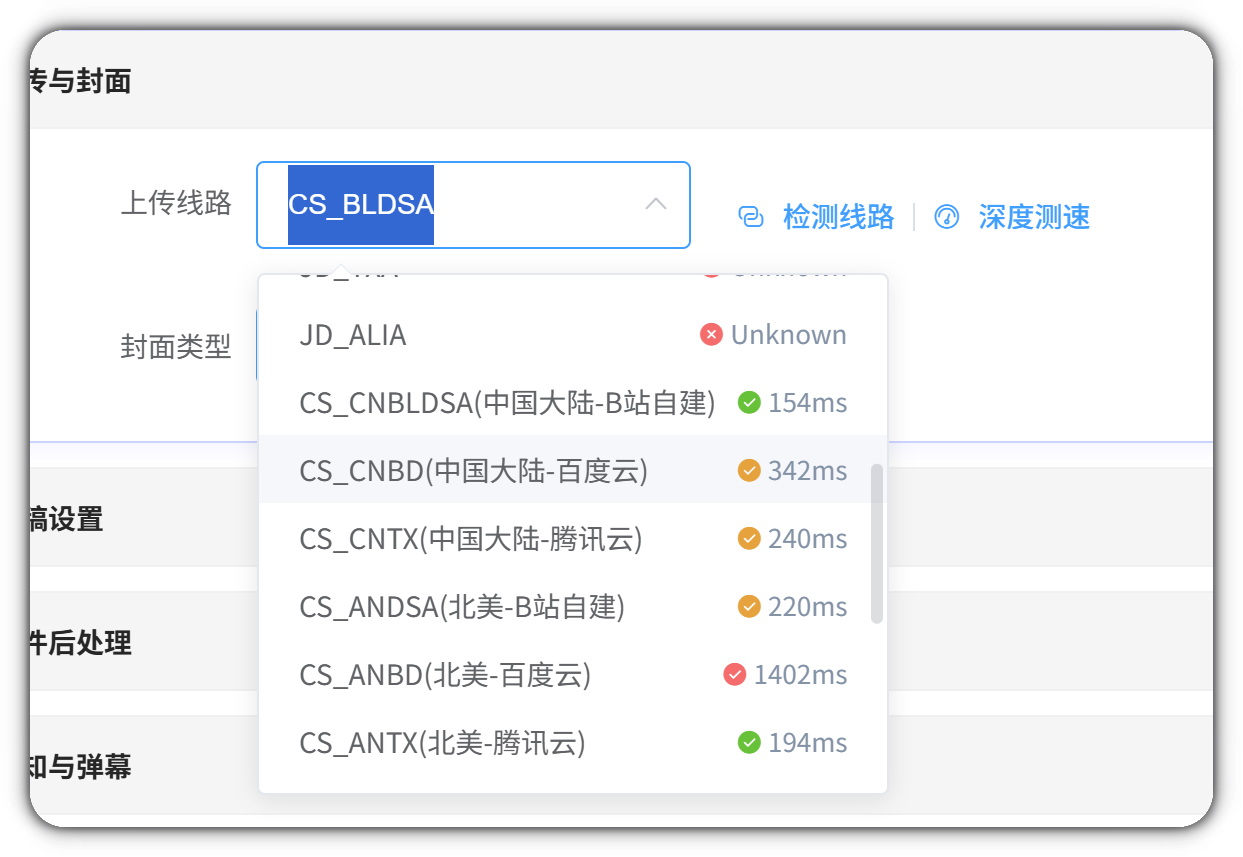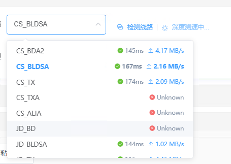 - 在基础检测通过后,可对可用线路进行真实的上传速度测试,并显示具体速度。