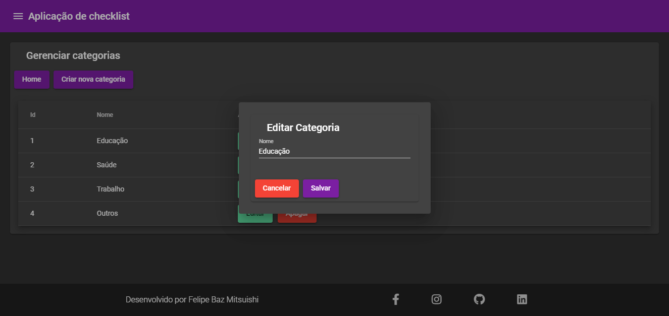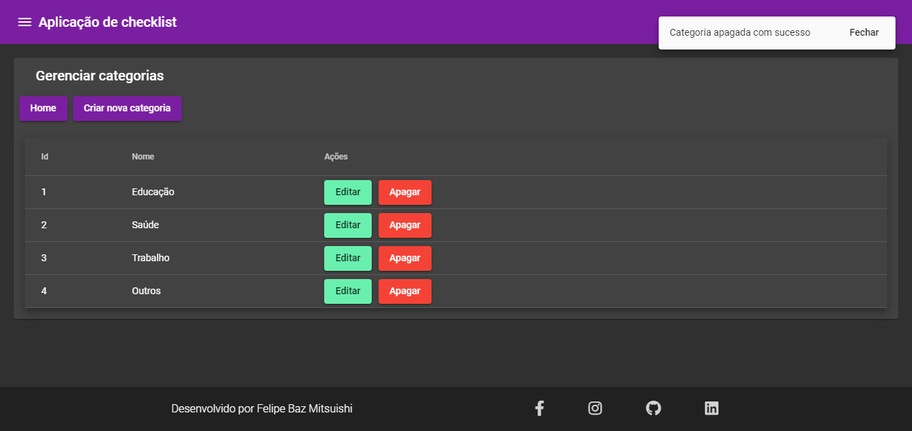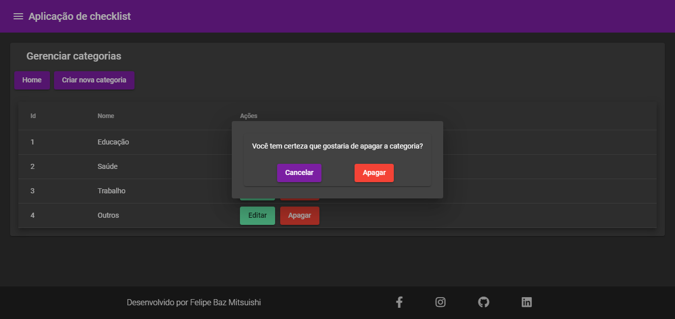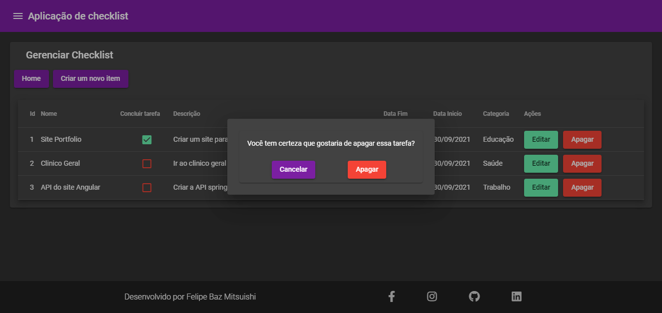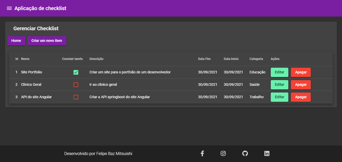 The footer section, was made where there are the principal social networks of the developer, as well as the copyright reservation of the site.