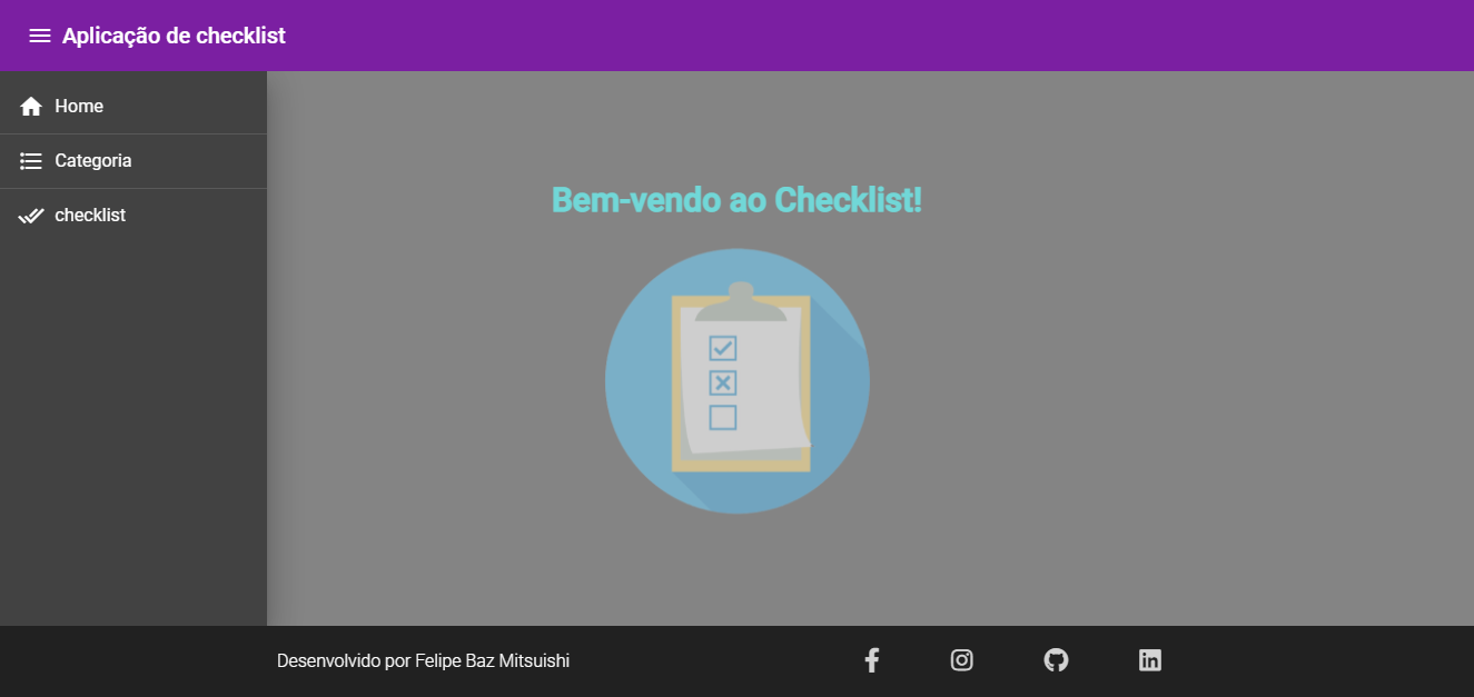 In the header, this is where the project name is presented, using the colors of the Angular Material Design template, specifically "Purple & Green" template. In this section, the sidebar menu is also present, which will be better explained in the General Functionalities section.