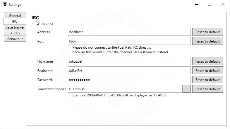 - Note that this is NOT a fully featured IRC client! It is highly recommended to use a bouncer to tunnel both your normal IRC client and this IRC Helper to the Fuel Rats IRC server through one connection.