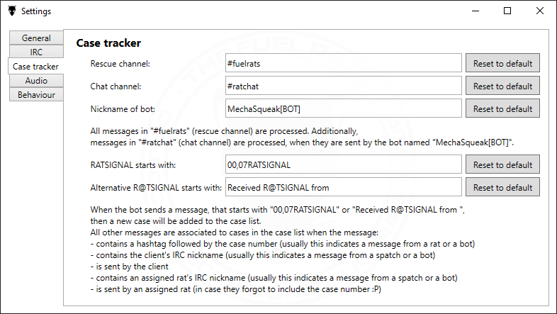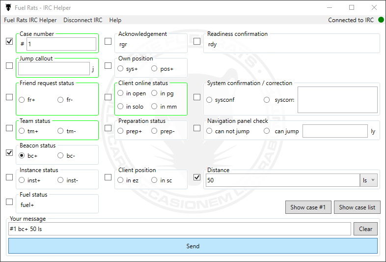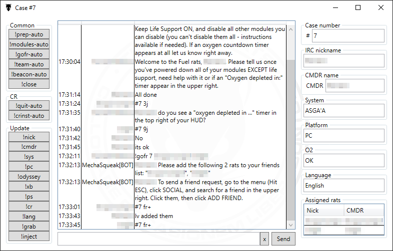- Tracks cases by processing received messages from the Fuel Rats IRC server