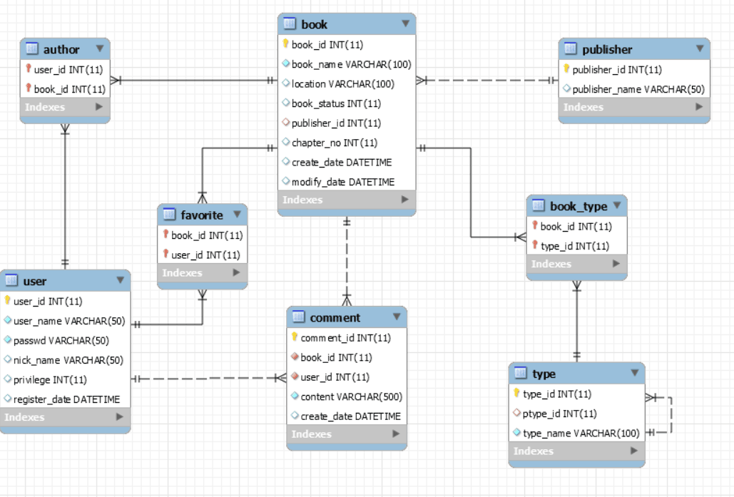 user and book are connected with author, favorite and comment.