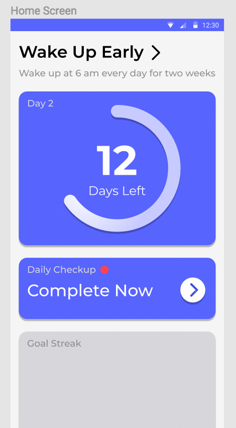 We should have a circular chart with "Days left" as the first card in the home view. <img width="235" alt="screen shot 2017-12-10 at 3 45 36 pm" src="https://user-images.githubusercontent.com/19956321/33809209-387d242a-ddc1-11e7-8e40-5f041b7e3c06.png"> Doesn't have to look quite like this. There are a lot of libraries for doing this with react native (but usually without the capped ends.