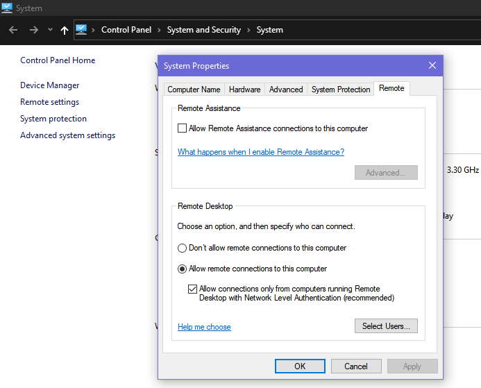 Go to my computer properties once your server is up > advanced system settings > remote > and tick the following