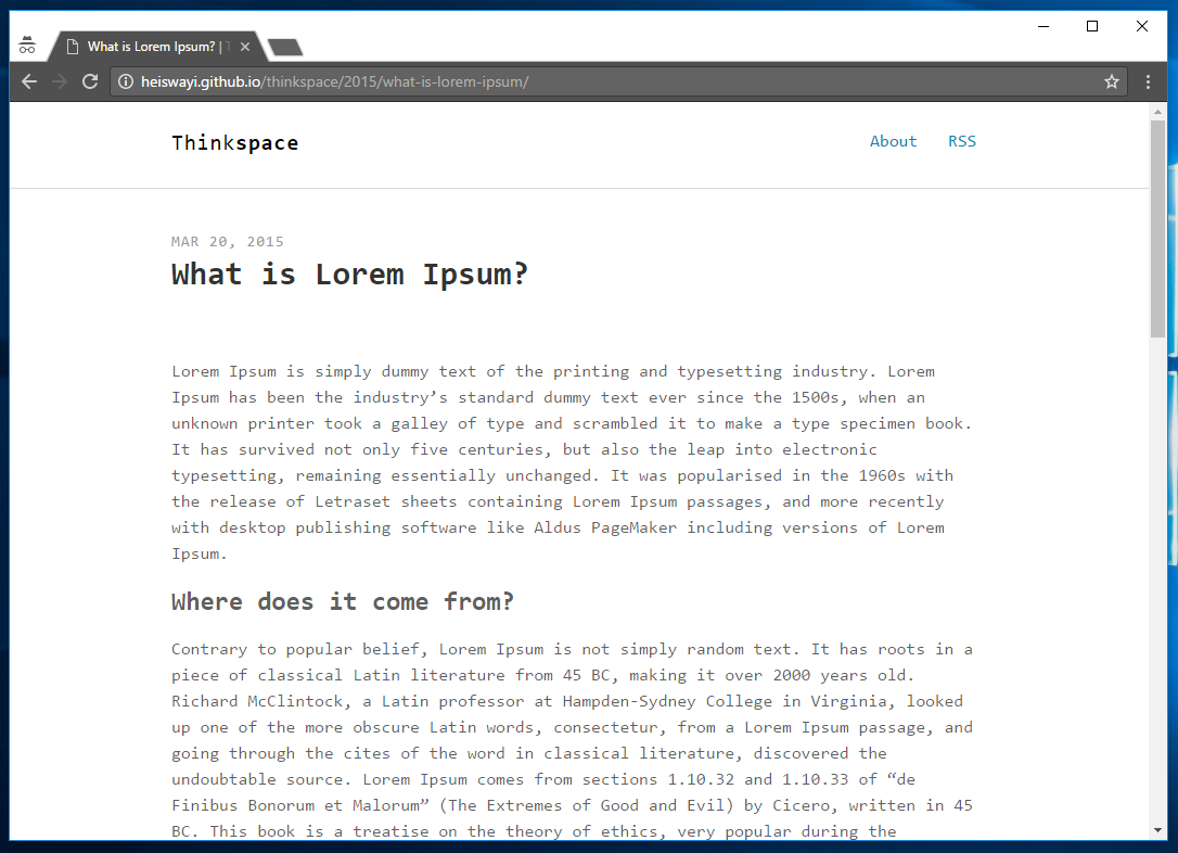 Thinkspace is just another minimalist Jekyll theme which is best suit for technical writing, but not limited to. Good for personal blog type too or project-based blog. Disqus comment is included.