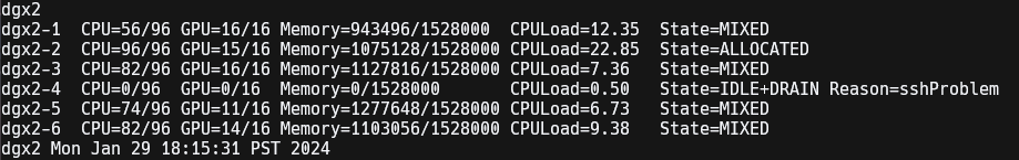 Before scheduling a job, it is often useful to know the current status of your selected nodes so you can select nodes with lower utilization.
