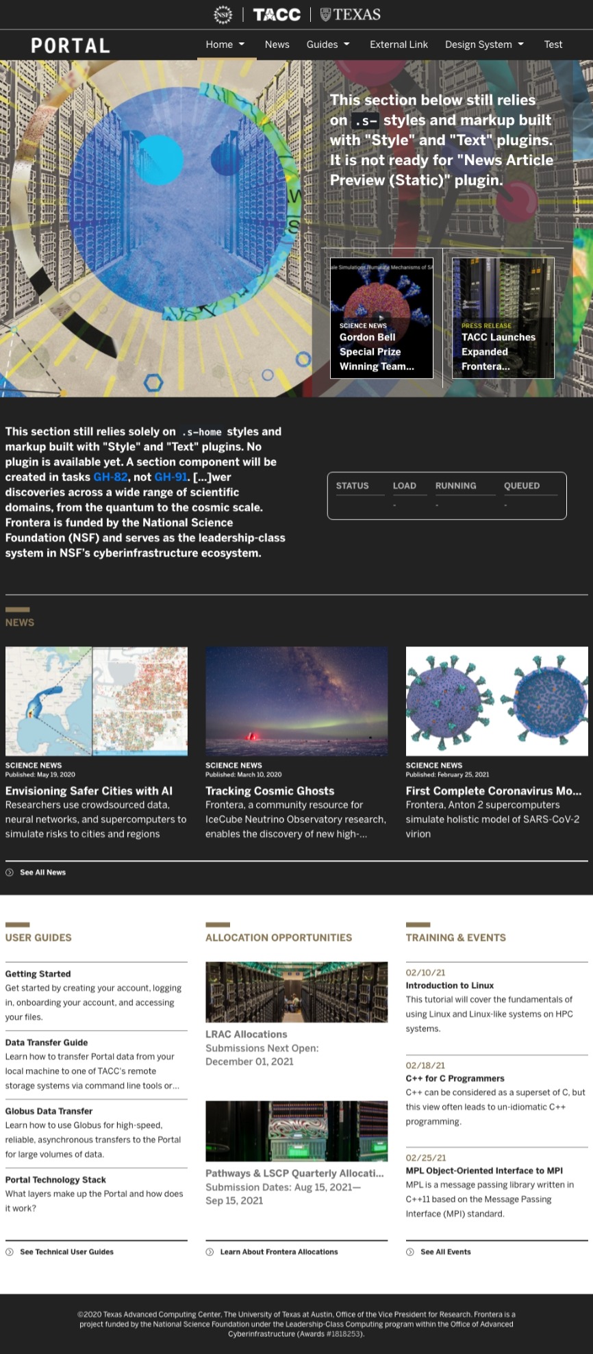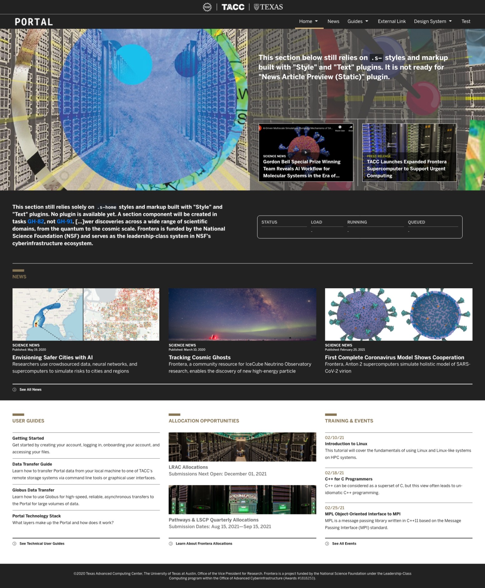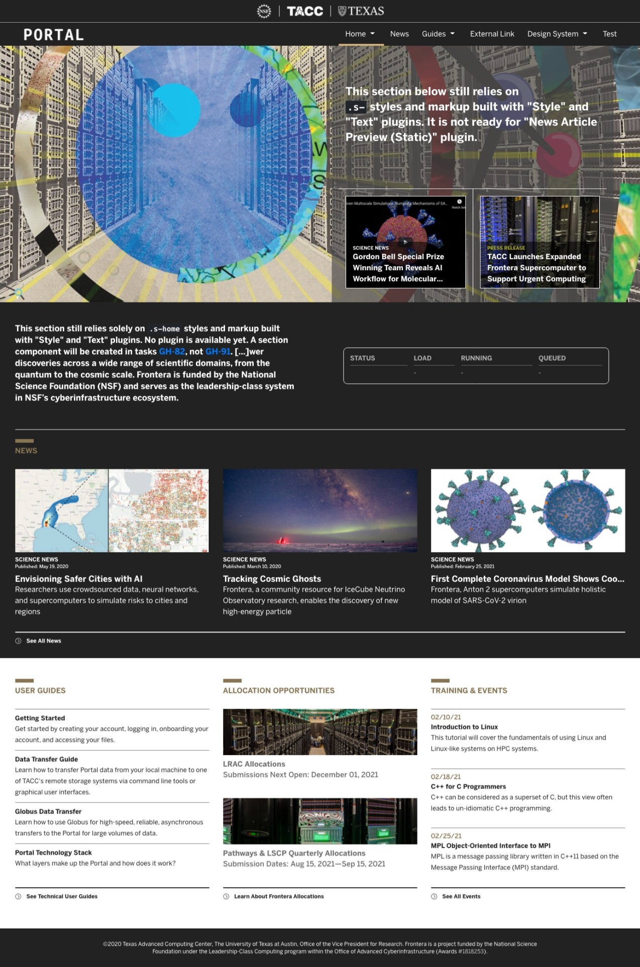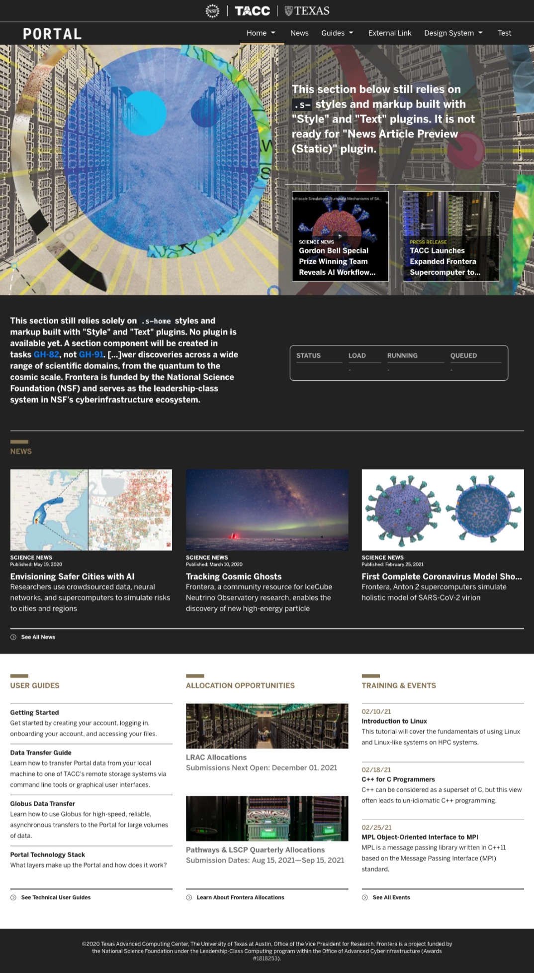 Deployed at Frontera (dev) homepage.