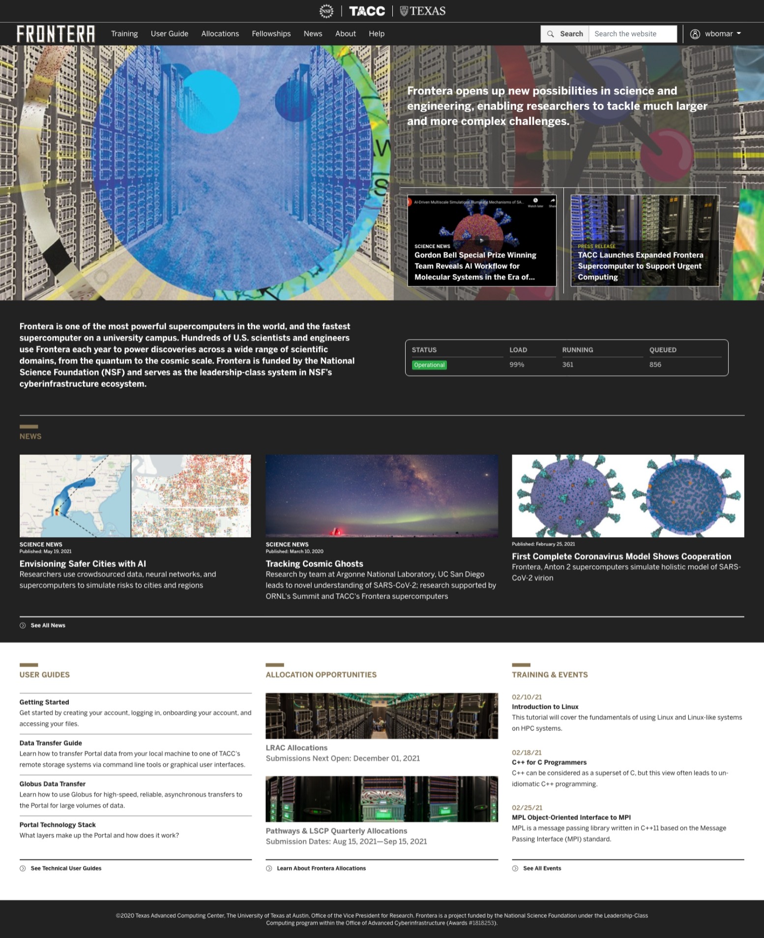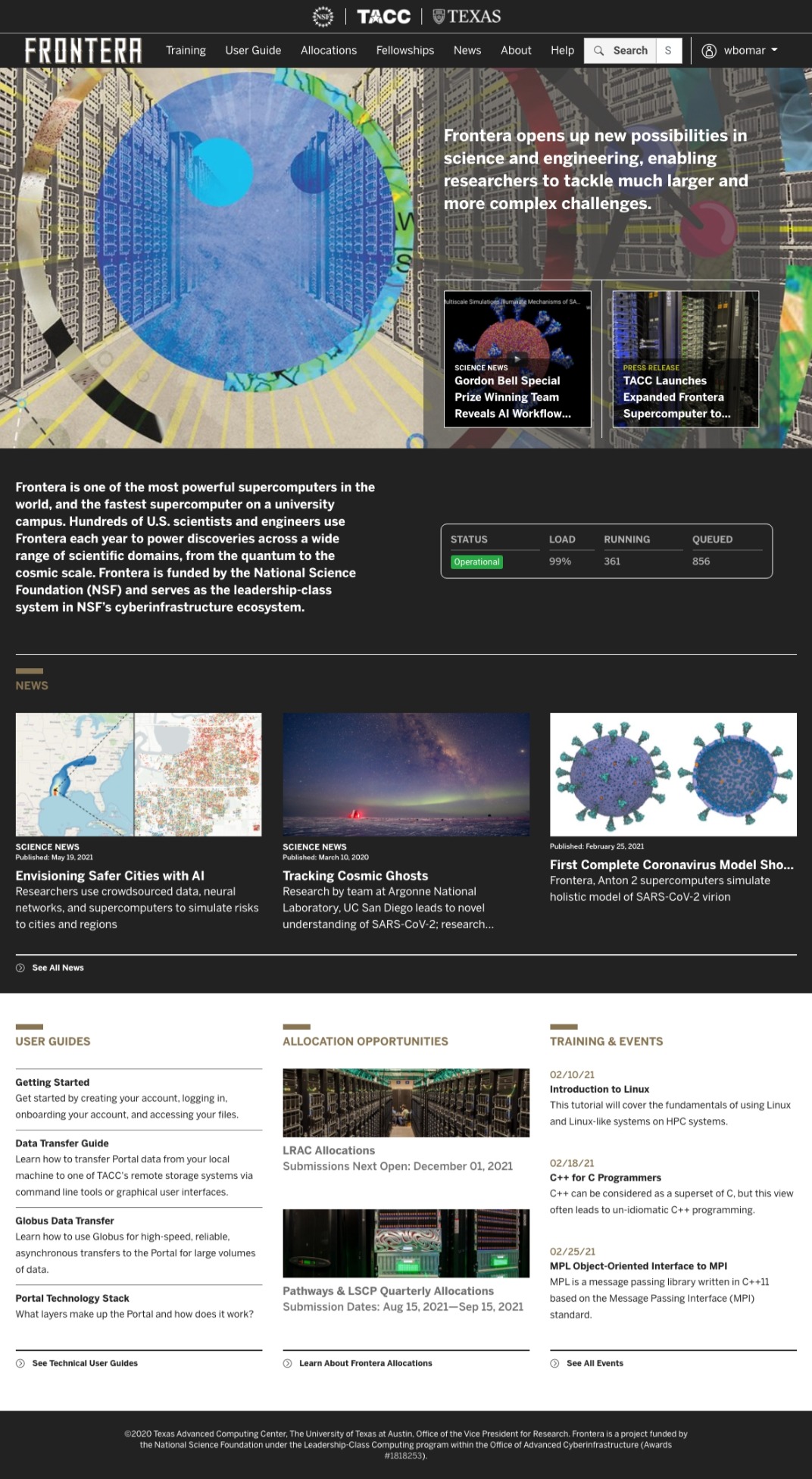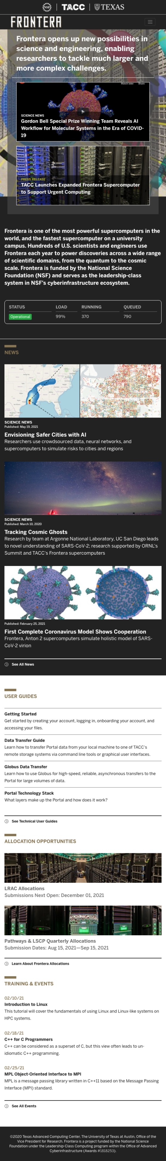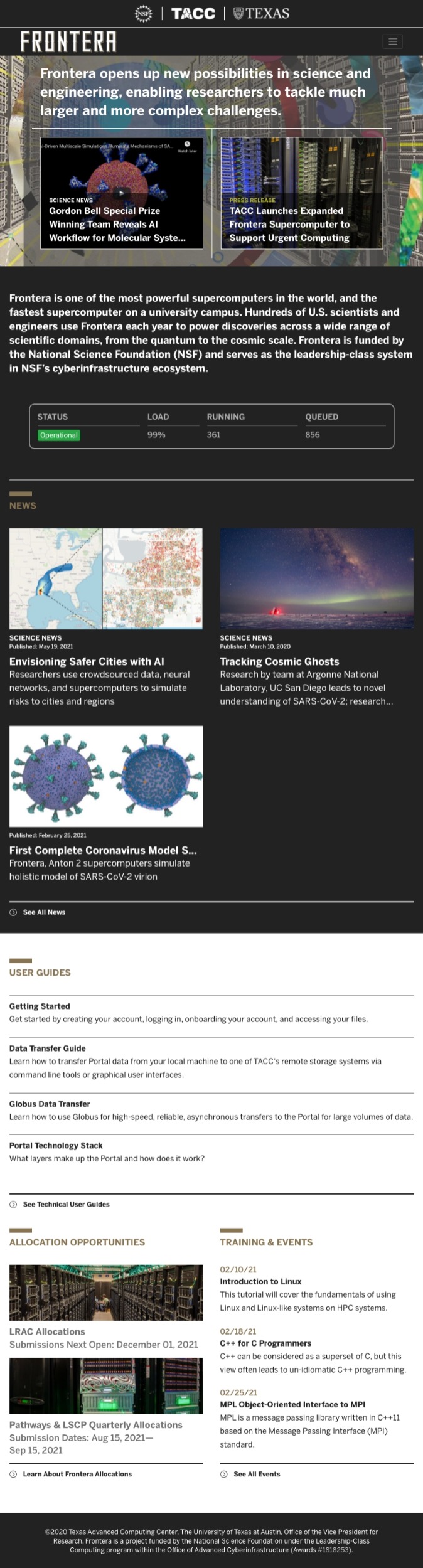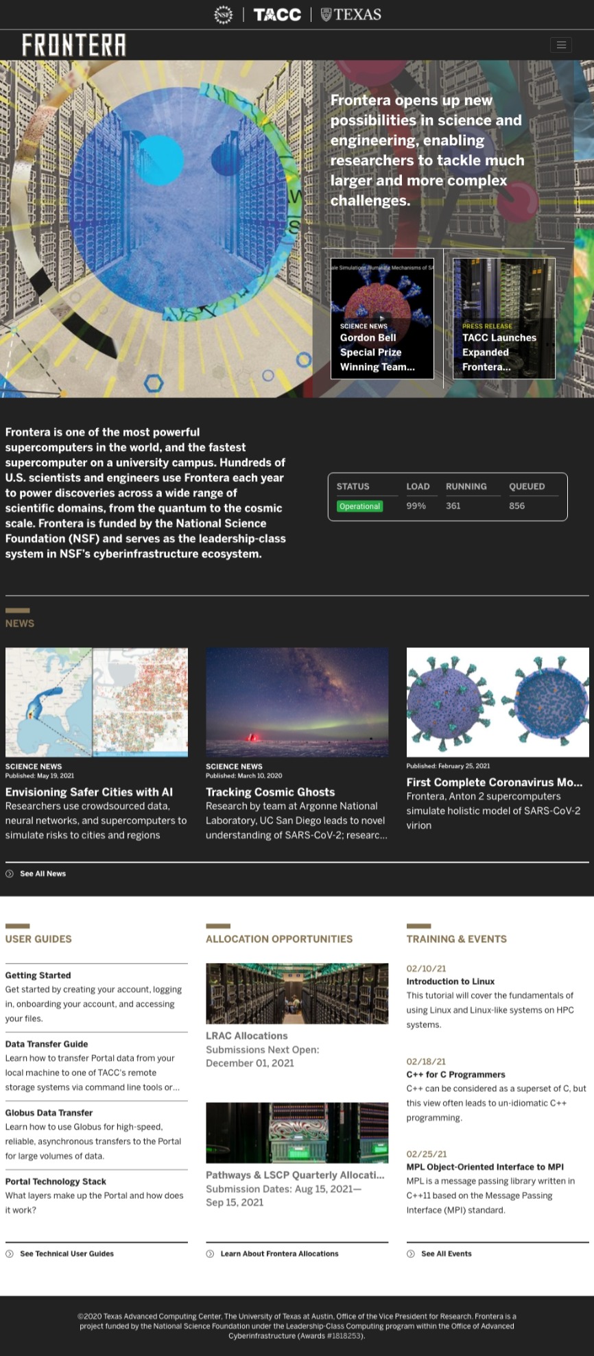 Deployed at Frontera (dev) homepage.