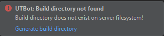- "UTBot: Build directory not found! Build directory does not exist on server filesystem." — select Generate build directory.