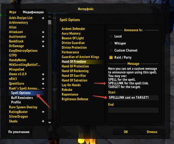 - Select any spell announce config;
