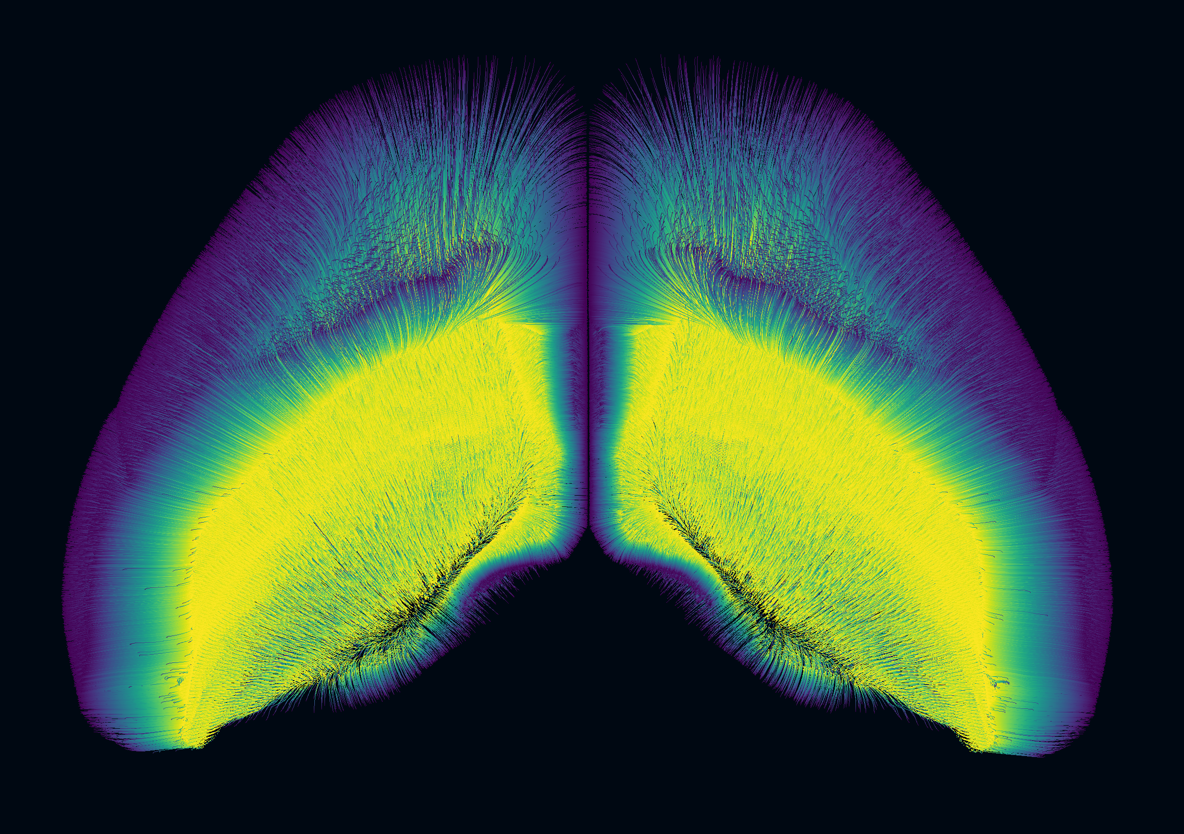 The streamlines allow one to generate flatmaps by mapping every pixel of the flattened surface to an average value along the streamline that starts at that voxel.