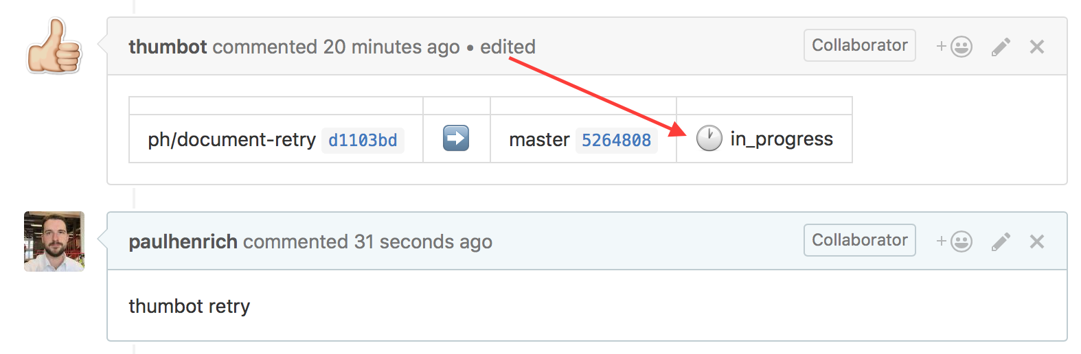 Thumbs was created to help validate and merge pull requests. It was initially developed as a replacement for Bors.
