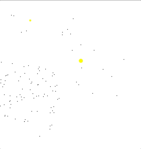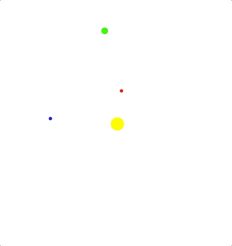 The object at the center has large gravitational pull and the other objects are initalized with a velocity. The centrifugal force and gravity keep each other balanced.