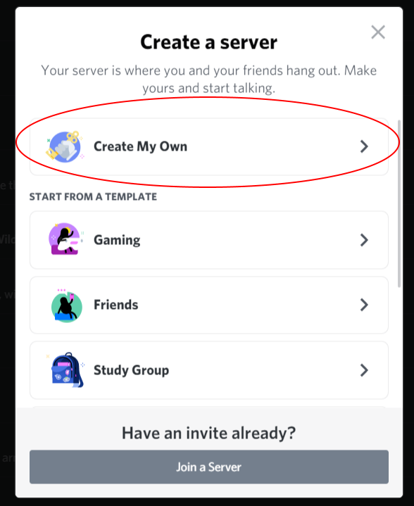 If you do not already have the admin role in a server, below are the instructions to create a discord server.