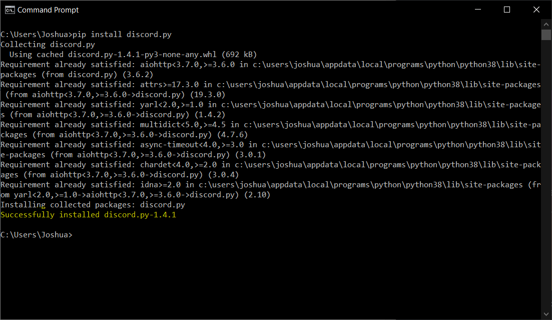 Discord, for those who are unfamilar, is a free text and voice chatting platform. You will need a Discord account in order to make and interact with a bot. You can create an account free at their website. You can either use Discord through the Desktop Application or through the browser. Additionally, you will need Python 3.8 installed. You can download Python from here