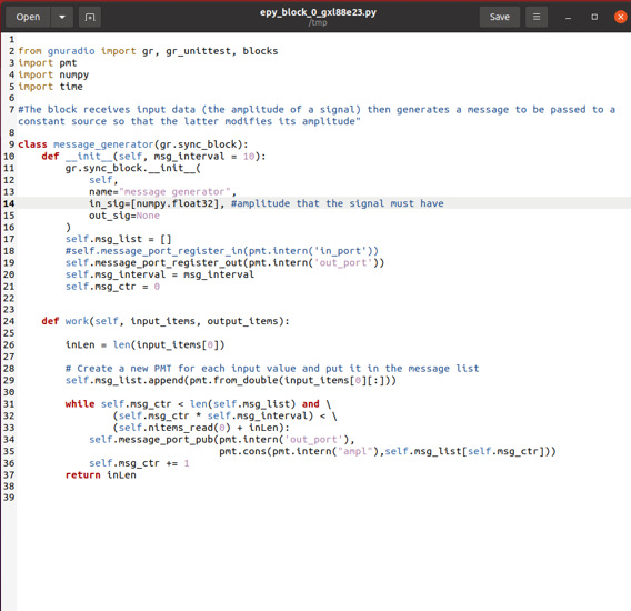 I attach the python code of the block (the message generator) and the GRC flowgraph.