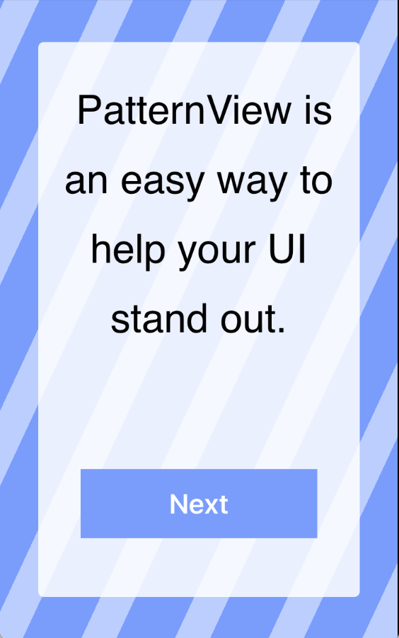 PatternView is a suite of views which can be used to easily implement certain patterns to create more aesthetically pleasing apps. The idea behind this is that especially for new developers who don't have their own designers, there's a lot if iteration involved in making good looking views, and for them it might be a lot easier to tweak a number than to go back and make half of the stripes in a view to be a slightly different shade of blue. This is about making iteration and design easy for developers. I'll be adding more views in the future.