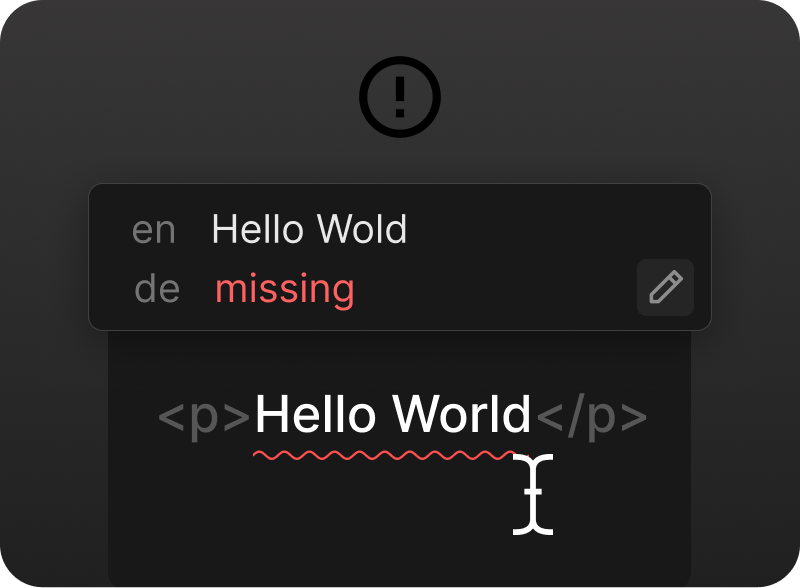 See translations and edit them directly in your code. No more back-and-forth looking into the translation files themselves.