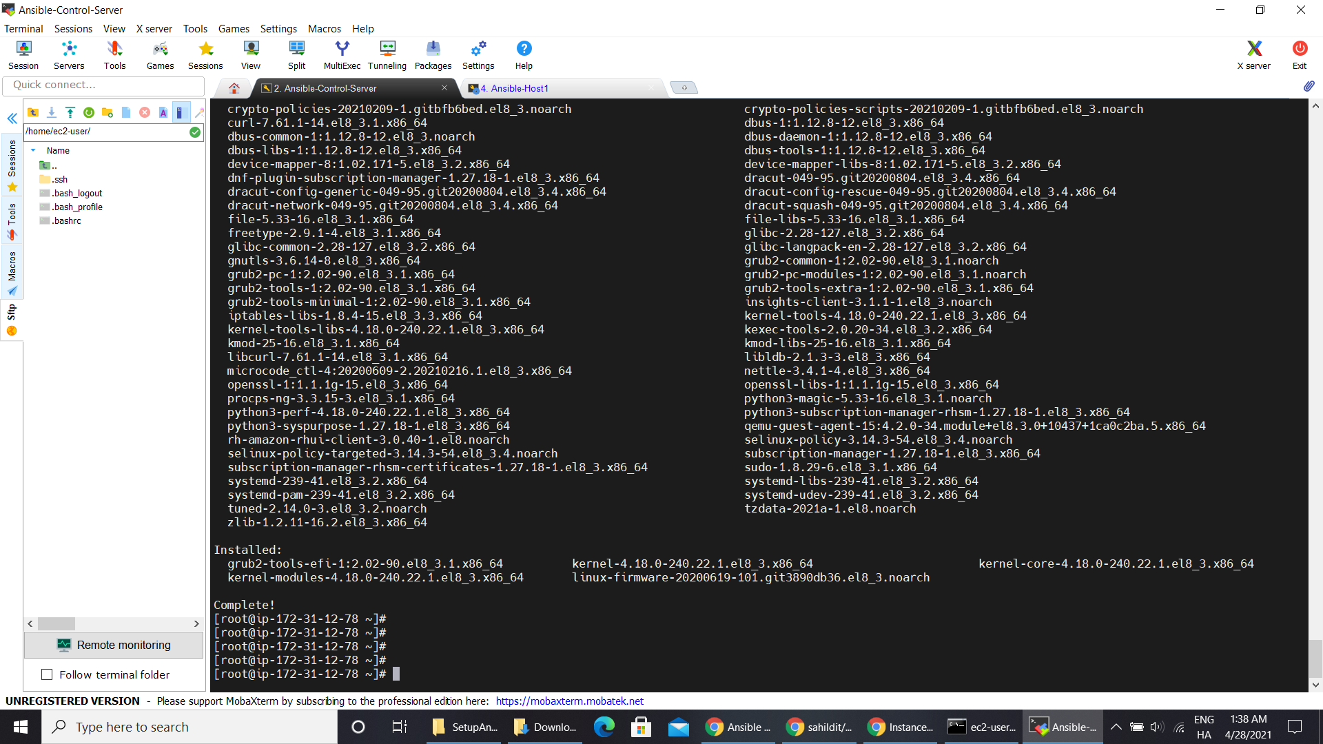 MobaXterm was used in order to tabbed a SSH client and their networks for remote computing. fox example public IP4 address for different EC2 instances.