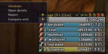 #What is DPSMate?# DPSMate is not only a meter which shows numbers of the raid, such as damage done, damage taken, dispells etc., it is moreover an analyzing tool to review the raid or the previous fight as accurately as possible. This data can help to improve the gameplay or to judge better over someones performance.
