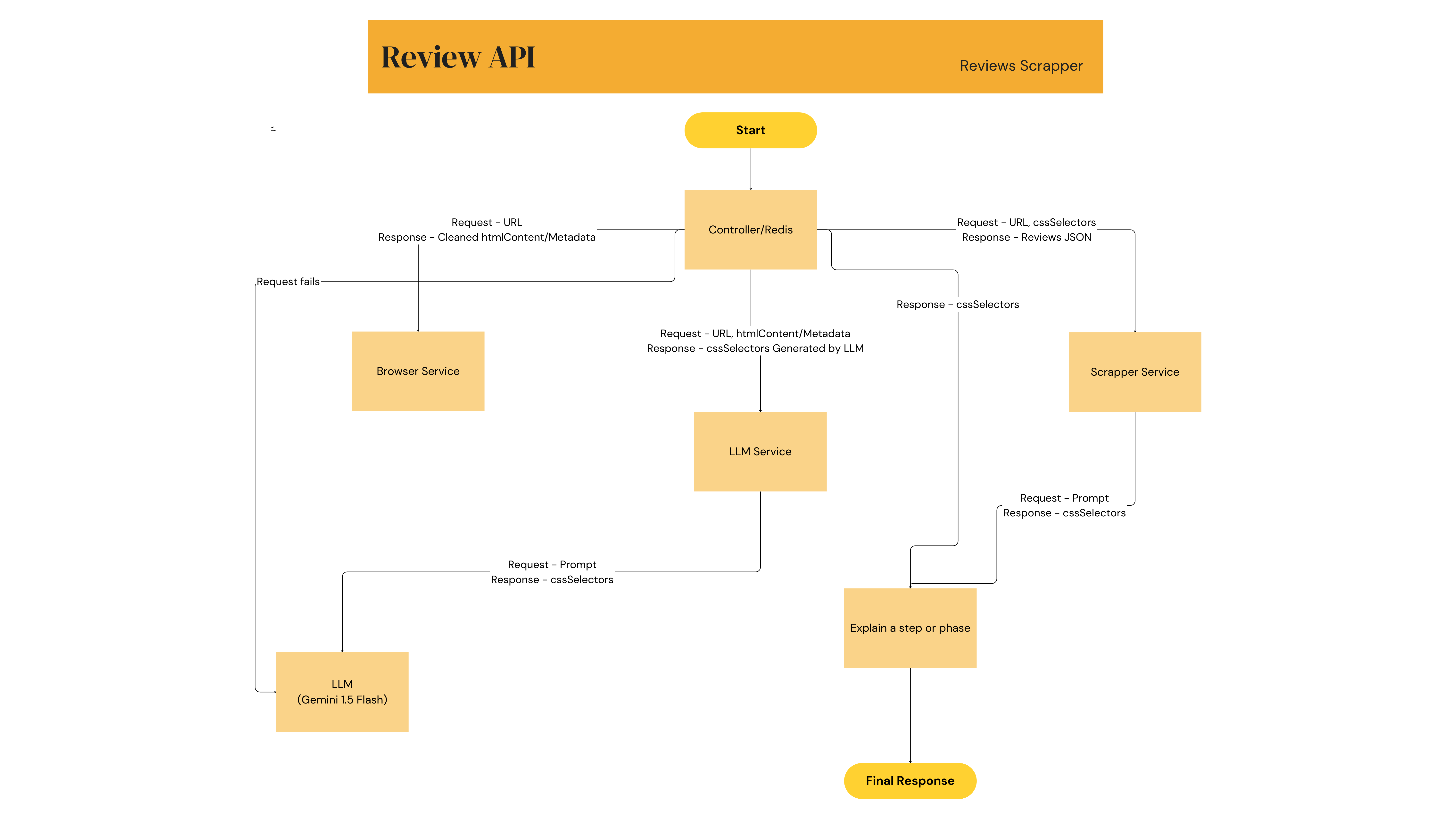 This service uses the CSS selectors provided by the LLM Service to extract the reviews. It also handles pagination, ensuring all reviews across multiple pages are retrieved.